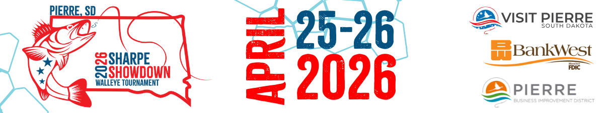 Lake Sharpe | Pierre, South DakotaThe 4th Annual Sharpe Showdown fishing tournament will be April 25 - 26. The walleye tournament will feature Lake Sharpe along the Missouri River, welcoming anglers across the Midwest. As we showcase the prosperous body of water, we give anglers, seasoned professionals or new to the sport, the opportunity to cast their lines and compete for fantastic prizes - all while promoting all our community has to offer.